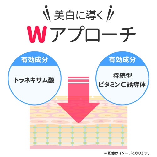 新たに配合*2された抗炎症有効成分「トラネキサム酸」がシミの元となる情報伝達にアプローチし、メラニンの生成を抑え、シミ・そばかすを防ぎます。さらに、美白有効成分「持続性ビタミンC誘導体」を贅沢*2に配合。その他のサポート成分との多角的なアプローチで、うるおいに満ちたすこやかな素肌をサポートします。