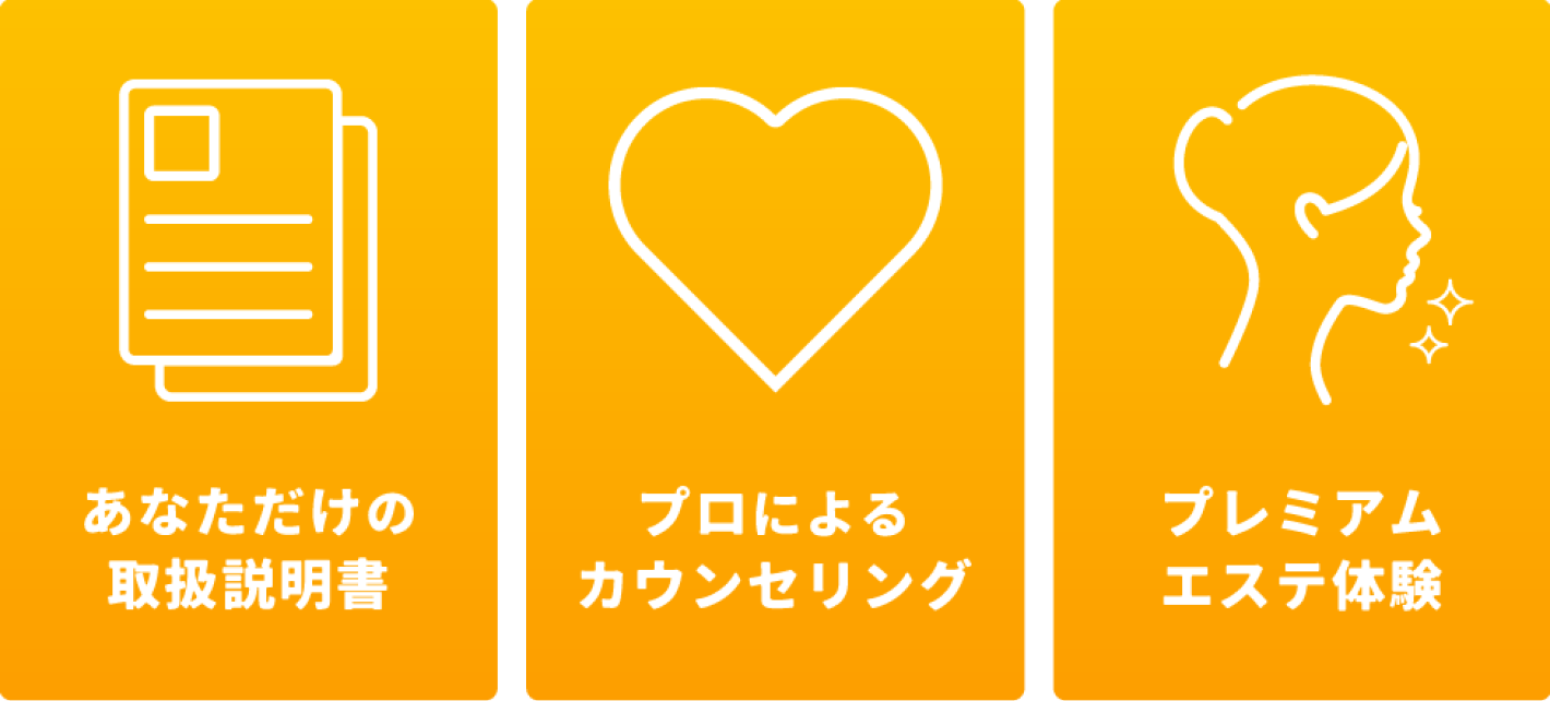 ※体調(持病・治療経歴・皮膚疾患・薬の使用など)や、お肌の状態(色素斑・美容整形・アートメイクなど)によってはお手入れを行えない場合がございます。コールセンター(0120-169-119)までお問い合わせください。