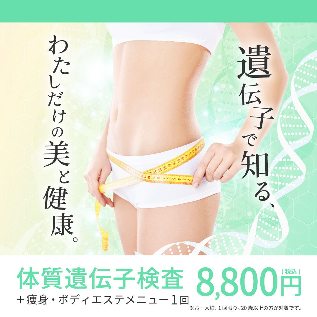 ※体質遺伝子検査エステ1回は、遺伝子検査の結果に合わせてコースをご提案させていただきます。