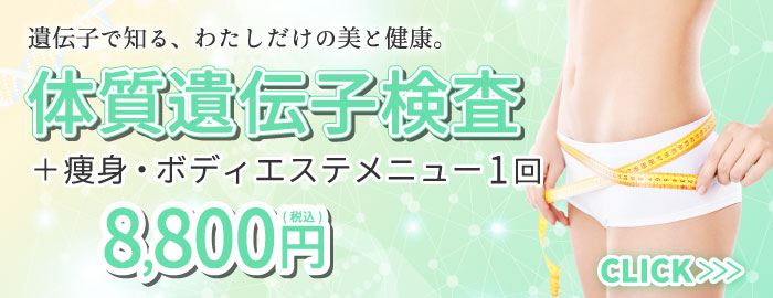 「美と健康」未来のためにどちらも大切だから…肥満遺伝子検査 + 肌遺伝子検査 + 痩身・ボディ or フェイシャルメニュー 1回 + 素敵なプレゼント